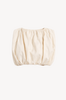 The Solid Bubble Top by Adriana Degreas captures the brand’s signature balance between architectural volume and refined minimalism. Crafted in a softly structured fabric, its gathered neckline and elasticized hem create a modern cocoon silhouette that floats away from the body while subtly defining the waist. Pair it with the matching Solid Bubble shorts.